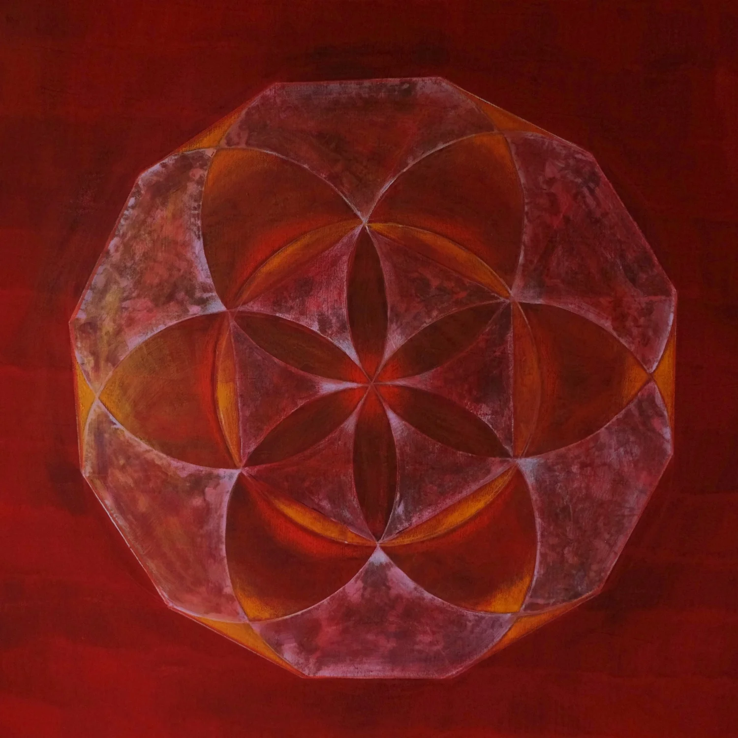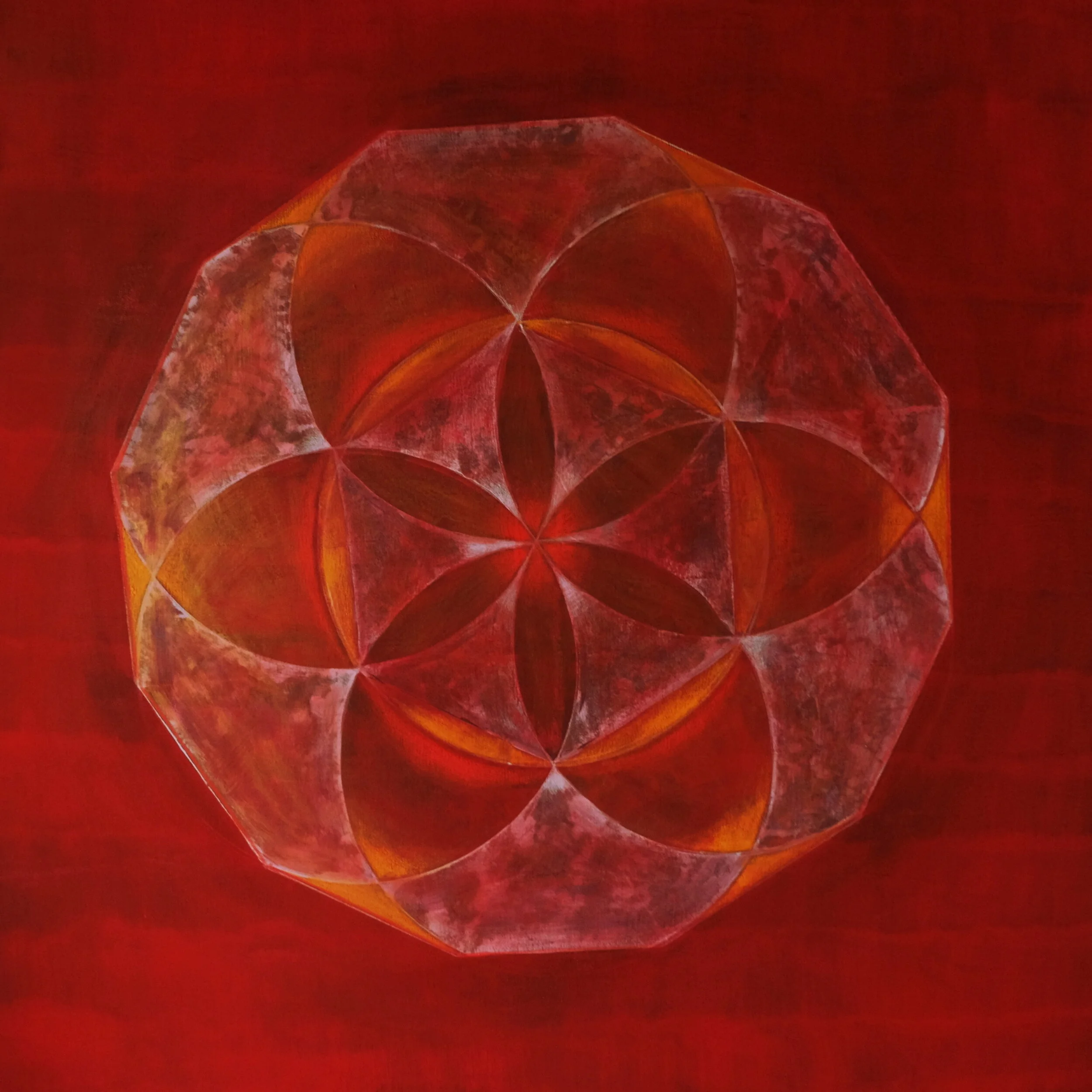 Von September bis Dezember finden vier Termine im Rahmen der Heiligen Geometrie statt. Auf besonderen Wunsch wiederholen wir das Wurzel-Chakra. Das Muladhara-Chakra ist dem Element Erde zugeordnet und steht für: Erdung, Stabilität, Überleben, Lebenswille, Sicherheit und Urvertrauen. Farbe: Rot, Symboltiere: Elefant, Stier oder Ochse. Jeder Kursteilnehmer gestaltet auf seine Weise sein Wurzelchakra mit Zirkel und hochwertigen Aquarellfarben auf Papier.